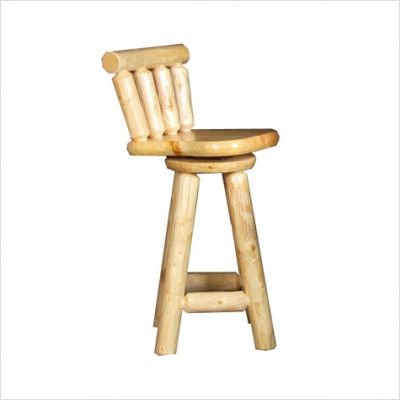 Log Bar Stool with Swivel and Back- Honey Pine Finish: Honey Pine Pictured in Clear Lacquer This is not your everyday bar stool. The Log Bar Stool from Northwoods Billiards is manufactured from the finest kiln dried materials for reduced stress. The stool is then laminated together, sized, and sanded. Each piece is hand draw-knifed for its own signature and character. Finally the stool is finished with a four step finishing process that includes a catalyzed lacquer top coat that protects it for years to come. Make the Log Bar Stool a part of your home today! Features: -Available in clear lacquer or Honey Pine finish -Stool has a swivel and back -Each piece is hand draw-knifed -Constructed of kiln dried hardwood -Catalyzed lacquer top coat to protect this product for years to come Read more...
