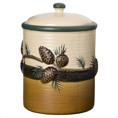 When it comes to organizing your kitchen, our pinecone medium canister goes a long ways towards providing storage space that is an attractive accent as well. Tea bags, packets of sweetener or hot chocolate, they?re right there when you want them, lined up with the rest of the matching canisters in the set. If you love Nature and earth tones décor, you?re going to want to collect all the pieces in this exciting new line of kitchen décor accessories. The beautiful cream and tan colors provide the perfect background for fir branches laden with cones that circle the entire canister. Stoneware. 5.5 x 8.25 inches. Read more...