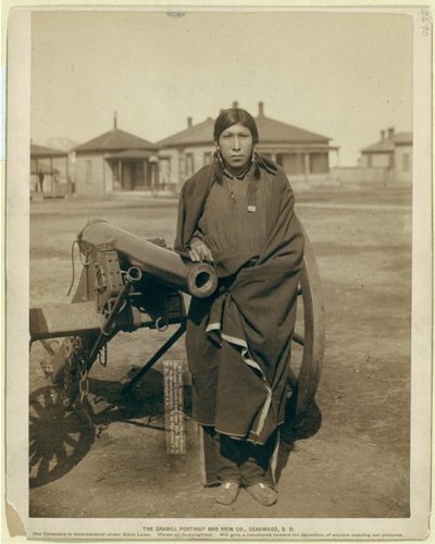 High quality reprint of original documentary drawing from the Library of Congress Grabill Collection. Archival description of original map from which this reprint is made (description may not apply to this reprint, but is included for reference): Plenty Horses, Oglala man, full-length portrait, facing front, with a blanket wrapped around him, standing next to a cannon--probably on or near Pine Ridge Reservation. Read more...