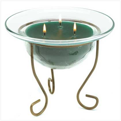 Simply light the triple wick of this pedestal candle, and enjoy the fresh-air fragrance of a tranquil forest glen. A naturally lovely addition to your indoor decor! Weight 3.4 lbs. Paraffin wax in glass bowl and metal stand. 8 3/8" diameter x 7" high. Read more...