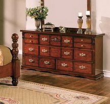 The Coventry Dark Pine Dresser Furniture by Crown Mark, accentuates this elegant collection and features a heavy duty hardwood frame. Dimensions: